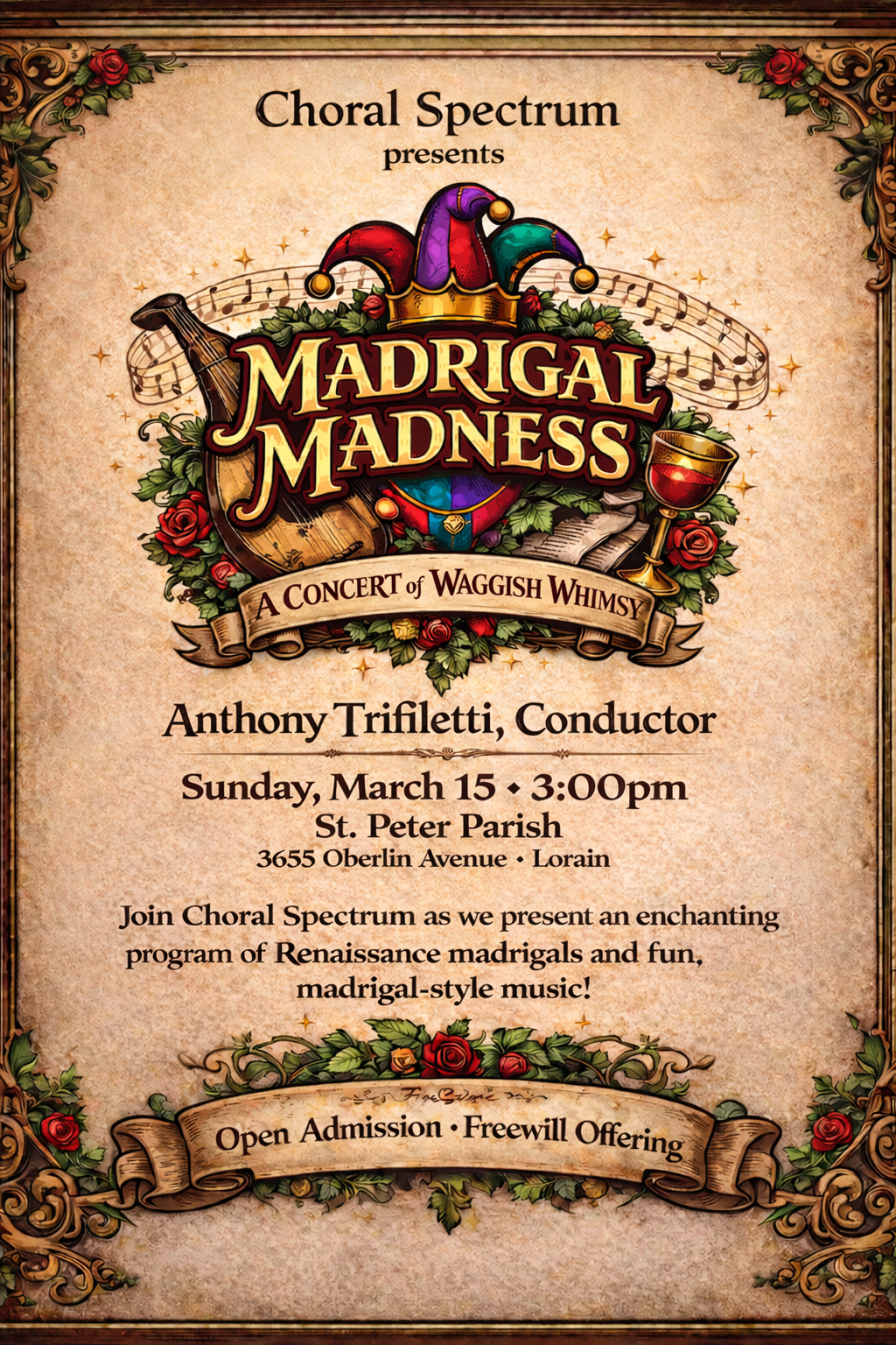 Join us as we present an afternoon of Renaissance Madrigals and Madrigal-Style Music. From Monteverdi to Taylor Swift, the music will have you fa-la-la-ing all the way home! All concerts are free and open to the public. A freewill offering will be taken.